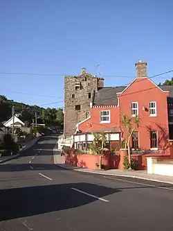 The village contains a 15th-century Norman castle or tower house, which belonged to the Knights Hospitallers and was built around 1480,[4] though it is thought the site's use was initially as a Preceptory, as far back as the 12th-century.[5] The castle was occupied by Cromwellian forces during the Irish Rebellion of 1641, and was later used as a transportation point for those displaced by the Act for the Settlement of Ireland 1652. It is from this association that the phrase "Go to Ballyhack" was coined.[3]