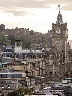 The Balmoral Hotel is a hotel and landmark in Edinburgh, Scotland. It is located in the heart of the city at the east end of Princes Street, the main shopping street beneath the Edinburgh Castle rock, and the southern edge of the New Town.