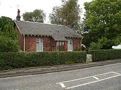 The platform and wooden station building with its ticket office, waiting room, canopy, etc. stood on the northern side of this single track line with two sidings on the southern side, a second added circa 1900, running to the east with a short loading dock and worked from the west with a brick built weighing machine house and a lineman's hut.[3] The main station building stood at the western end of the platform. An overbridge stood to the east with steps down leading to a path to the station buildings.