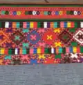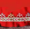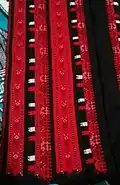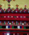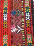 Different regions of Balochi tribes have their own distinct needlework designs.[7] This craft has traditionally been created only by women, and has been passed down through the generations.[5][8][7] The stitching designs and patterning hold meaning; common motifs include arrows, "chicken feet", diamonds, and flowers.[7] Some of the designs may also incorporate other materials such as small pieces of mirror (known as shisha), different colors of thread, and/or pieces of colored fabric.[9][1] The needlework was traditionally used for decorating women's clothing,[10] however it has also been used for decorating pillows, curtains, tablecloths, and men's clothing.[11]