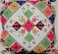 The Baloch people are from the Pakistani province of Balochistan; the Iranian province of Sistan and Baluchestan; and the southern areas of Afghanistan, including Nimruz, Helmand and Kandahar provinces.[3] The exact history of Balochi needlework is unknown. One theory is Balochi needlework originated from Mehrgarh (in modern-day Pakistan), a Neolithic site and culture.[4] Another theory is it was brought from the migration of the Slavs to Balochistan approximately 200 years before the founding of Islam,[5] their traditional embroidery is called Rushnyk and contains many similarities. Another theory is the craft had developed alongside the silk production industry.[6]