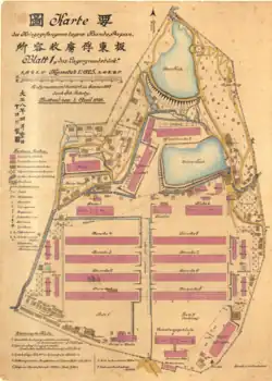 The Bandō POW camp (板東俘虜収容所, Bandō Furyoshūyōsho) was a prisoner-of-war camp during World War I in the western suburbs of what is now Naruto, Tokushima Prefecture, on the island of Shikoku, Japan. From April 1917 until January 1920, just under a thousand of the 3,900 soldiers of the Imperial German Army, Imperial German Navy, German Marine Corps and Austro-Hungarian Navy who had been captured at the Siege of Tsingtao in November 1914 were imprisoned at the camp. When the camp closed in 1920, sixty-three of the prisoners chose to remain in Japan.[1] The site of the camp was designated a National Historic Site in 2002.[2]