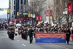 ![]() The band parading in downtown Vancouver during the 2014 Rogers Santa Claus Parade. | |