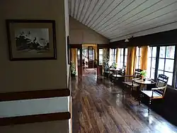 The century-old British-built property is associated with the development of the hill-country railway and is situated within walking distance from the railway station. Bandarawela Hotel's origins date back to the turn of the 19th / 20th century when the railways were being extended by the British from Nanu Oya to the southern highlands as a Railway Hotel.[4] The foundation stone for the building was laid in 1893 for a tea planter's club.[2][5] It was subsequently converted into a rest house and was used as a sanitarium by British soldiers and officers recovering from the Second World War.[6] In 1938 there was a refurbishment and extension of the building to its present capacity. The hotel had a 'European Only' policy until Sri Lankan independence in 1948.[2][7]