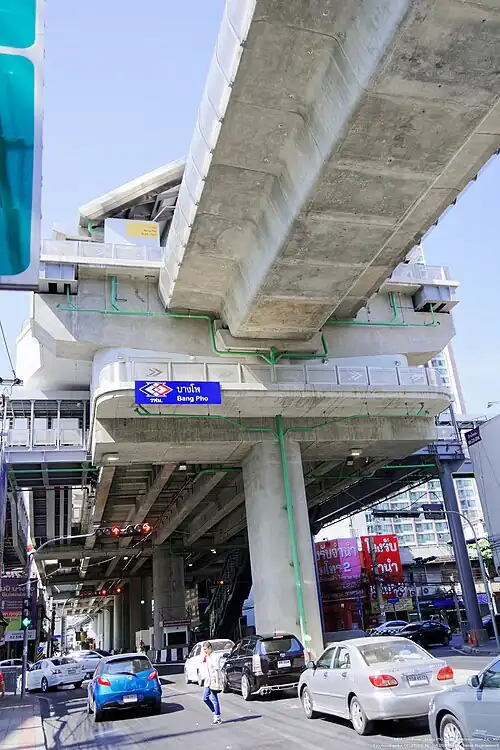 Bang Pho station (Thai: สถานีบางโพ), is an elevated railway station on MRT Blue Line. The station opened on 4 December 2019.[1] This is one of the nine stations of phase 3 of MRT Blue Line. It has a connection to the Chao Phraya Express Boat at Bang Pho Pier.