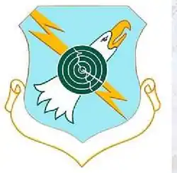 - ^ Approved 25 July 1958. Description: Azure, saltirewise, an eagle’s head erased Argent, eye Gules, beak Or and issuant from sinister chief a lightning flash of the last [color mentioned], all surmounted by a radarscope Vert with markings of the second [color mentioned]. Significance: The emblem is symbolic of the fundamentals of the sector's air defense mission. The radarscope represents detection, the eagle’s eye symbolizes identification, the eagle indicates interception, and the bolt of lightning represents destruction.