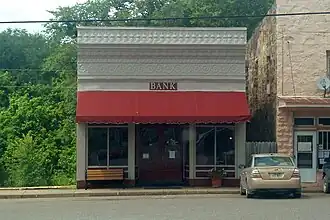 The Bank of Kingston is a historic commercial building at 101 Public Square in Kingston, Madison County, Arkansas. It is a single-story stone structure, built in 1911, notable for the use of pressed metal (provided by the noted Mesker Brothers of St. Louis, Missouri) on three sides. The most elaborate treatment is on the main facade, which has a richly decorated frieze, cornice, and parapet above the relatively conventional storefront. The east and west sidewalls of the building have a pressed metal veneer shaped in imitation of stonework. The interior of the building, restored in the early 1980s, has also retained rich details. The building is the architecturally finest commercial building in the small community.[2]
