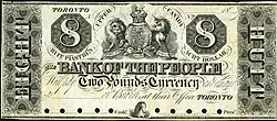 The bank was purchased by the Bank of Montreal in 1840.[7] Like the other Canadian chartered banks, it issued its own paper money. The Bank of Canada was established through the Bank of Canada Act of 1934 and the banks relinquished their right to issue their own currency.