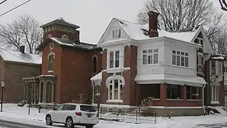 Bankers Row Historic District is a national historic district located at Logansport, Cass County, Indiana. The district encompasses 20 contributing houses in a residential section of Logansport. It developed between about 1875 and 1925 and includes notable examples of Queen Anne and Italianate style architecture.[2] Bankers Row gains significance because it is associated with the growth and development of Logansport. The town gained commercial success in 1840 with the Wabash & Erie Canal, and then in the 1850s, when the first railroad came through town. The name "Bankers Row" was given to these homes by locals in the 1960s because of its association in the earlier part of the century, with men in the field of finance and banking.[3]