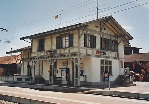 Bannwil railway station (Bahnhof Bannwil) is a railway station on the metre-gauge line Langenthal–Oensingen at Bannwil, canton of Bern, Switzerland.[1] It was opened in 1907 by the Langenthal-Jura-Bahn. The line is currently operated by Aare Seeland mobil (ASM).[2] The original station building with its goods shed is in the architectural inventory of the canton of Bern.