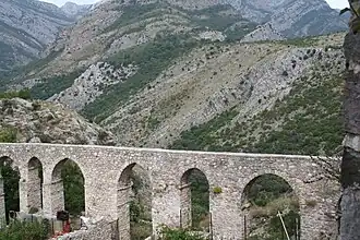 The Bar Aqueduct (Montenegrin: Барски аквадукт, romanized: Barski akvadukt) is a stone aqueduct located on the northern side of Stari Bar Fortress, 4 km north of the town of Bar in Montenegro. The Bar Aqueduct is the only remaining aqueduct in Montenegro, and one of the largest and best preserved aqueducts from the three remaining ones in the former Yugoslavia, which include the Diocletianus Aqueduct near Split, Croatia and the Skopje Aqueduct in North Macedonia.
