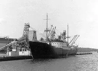 The German cargo Ship MS Vogelsberg loading of sugar - Santa Cruz de Barahona, 1959