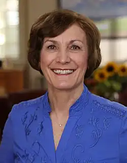 On October 16, 2019, Bollier announced that she would run in the 2020 election for the United States Senate seat being vacated by the retiring Pat Roberts.[14] The next day, former United States Attorney for Kansas Barry Grissom dropped out of the race and endorsed Bollier.[15] Grissom's withdrawal from the race came despite his having raised almost half a million dollars in contributions during the previous quarter. His departure left Bollier as the party's clear frontrunner in the primary.[16] She won the Democratic primary on August 4, 2020, with 87.5% of the vote. In the general election, she faced the Republican nominee, congressman Roger Marshall, the congressman for Kansas's 1st congressional district, who defeated Kansas Secretary of State Kris Kobach in the Republican primary.[17][18]