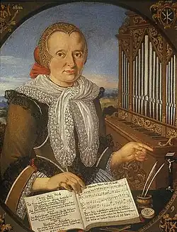 Barbara Kluntz was not married; she moved into the collection under her maiden name and as a "maid". Her vocal and instrumental music making was probably dedicated to purely religious purposes. She also taught her colleagues, their students and many patrician daughters, in "clavier-playing". Her great role model was the French poet Georgette de Montenay, whose portrait she had included in her chorale book from 1711.