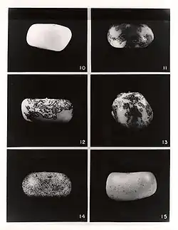 McClintock's cytogenetic research focused on developing ways to visualize and characterize maize chromosomes. This particular part of her work influenced a generation of students, as it was included in most textbooks. She also developed a technique using carmine staining to visualize maize chromosomes, and showed for the first time the morphology of the 10 maize chromosomes. This discovery was made because she observed cells from the microspore as opposed to the root tip.[21][26] [23] By studying the morphology of the chromosomes, McClintock was able to link specific chromosome groups of traits that were inherited together.[27] Marcus Rhoades noted that McClintock's 1929 Genetics paper on the characterization of triploid maize chromosomes triggered scientific interest in maize cytogenetics, and attributed to her 10 of the 17 significant advances in the field that were made by Cornell scientists between 1929 and 1935.[28]