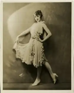 Newberry quickly established herself as a star dancer, and she appeared regularly in Broadway musicals for the next eight years. After the Ziegfeld Follies of 1925, she performed in productions such as No Foolin (1926), Golden Dawn (1927-28), Good Boy (1928-29), and in Show Girl (1929).[5] She achieved widespread fame in 1929 when Florenz Ziegfeld, Jr. pronounced that she had "the most beautiful legs in America."[6] That assessment would be repeated hundreds, if not thousands, of times in future press stories about Newberry.