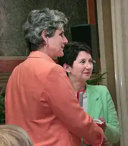 Barbara Rosenkranz (née Schörghofer;[1] born 20 June 1958 in Salzburg) is an Austrian politician for the Freedom Party of Austria. She was a member of the Parliament of Austria, the National Council, from 2002 to 2008, where she served as Chair of the Committee for Health Affairs. Rosenkranz was the Freedom Party candidate for the Austrian presidential election in 2010.[2][3] Rosenkranz received 15.62% of the vote, coming second after incumbent Heinz Fischer.[4] Until 2017, she was a member of the Freedom Party of Austria.