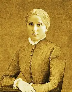 There is almost no verifiable information about Barbora's short life, which is shrouded by various hagiographical narratives.[1] She was the only child born into a noble family of Umiastowskis.[2] Her mother died early and she had a strict stepmother. Local people tell stories about her care for the sick and generosity for the beggars.[2] She would intercede on behalf of serfs and walk to the church on her knees.[1] It is said that her exceptional piousness and devotion to God displeased and angered her father. She wanted to become a nun, and even joined a Franciscan monastery in Riga, but her non-believer father would not allow it.[3] Narratives tell that she jumped out of the second floor of the manor to escape her father's wrath, and died of injuries.[1][4] In a document from 1876, vice-governor Vasily Ryzhkov of Kovno Governorate first recorded the claim that Barbora died escaping her father's lust and thus remained a virgin.[5]