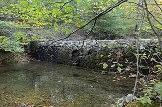 The Bard Springs Dam No. 2 is a historic recreational support facility in Ouachita National Forest. It is located at the Bard Springs recreation site, southeast of Mena and north of Athens in Polk County, off County Road 82 and Forest Road 106 on the banks of Blaylock Creek. This dam is located at the eastern end of the recreation area, and is about 75 feet (23 m) long and 15 feet (4.6 m) high at its center. It is made of fieldstone, and has a series of staggered steps at its base to reduce erosion. It was built in 1936 by a crew of the Civilian Conservation Corps, and is one of four surviving CCC structures (the others are a second dam, bathhouse, and a picnic shelter) in the immediate area.[2]