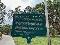 A Florida state history marker, located at Boca Raton on the grounds of the Spanish River State Park, honors barefoot mailmen.