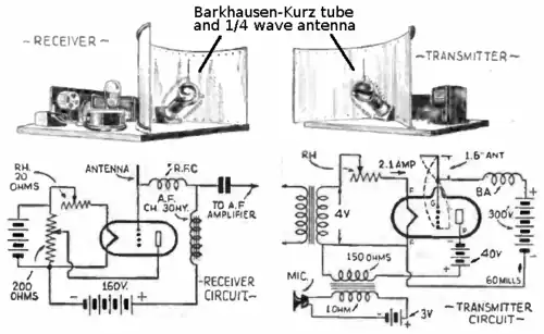 Experimental low power 3 GHz AM communication link from 1938 uses Barkhausen-Kurz tubes for both transmitting and receiving