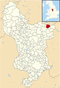 According to the 2021 census it had a population of 2,855.[1] The village is near junction 30 of the M1 motorway and is about 5 miles (8.0 km) north of Bolsover.