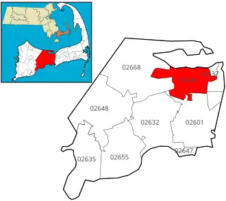 Location of ZIP code 02630 Barnstable within the Town of Barnstable, county, and state