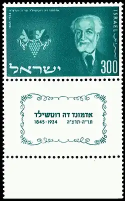 Baron Abraham Edmond Benjamin James de Rothschild (Hebrew: הברון אברהם אדמונד בנימין ג'יימס רוטשילד, romanized: HaBaron Avraham Edmond Binyamin Ya'akov Rotshield; 19 August 1845 – 2 November 1934) was a French member of the Rothschild banking family. A strong supporter of Jewish settlement in Palestine, his large donations lent significant support to the First Aliyah, which helped lead to the establishment of the State of Israel—where he is simply known as "The Baron Rothschild", "HaBaron" (lit. 'The Baron'), or "Hanadiv Hayeduah" (lit. 'The noble donator').[1]