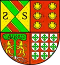 Crest – a golden wing bearing a black letter "S" as in the shield, with a silver label charged with a black "S" as a mark of cadency.[2]