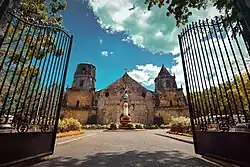 There was a conglomeration of factors that led to the presence of Baroque elements in the architecture of the Philippines, specifically in church architecture. During the Spanish colonial period (1565–1898), Spanish missionaries arrived, sharing not only their religion but also their architecture, inspired from their native land. The Spaniards wished to create permanent, long-lasting churches as a testament to the power of God, and did not consider the current church structures in the Philippines as proper places to worship.[4] As most Spanish missionaries were not trained in architecture or engineering, the local townspeople including Filipinos and Chinese migrants, alongside the Spanish friars would take part in the building and design of local churches. The combination of ideas from the missionaries and locals effectively fused native Spanish designs with a uniquely Oriental style. The church's aesthetic was also shaped by limited access to certain materials, and the need to rebuild and adapt to natural disasters including fires and earthquakes, creating a style sometimes referred to as Earthquake Baroque.[5] The Baroque Churches of the Philippines is a serial inscription consisting of four Roman Catholic churches constructed between the 16th and the 18th centuries in the Spanish period of the Philippines. They are located in separate areas of the Philippine archipelago, two at the northern island of Luzon, one at the heart of Intramuros, Manila, and the other in the central Visayas island of Iloilo.[6]
