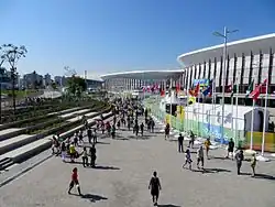 After the conclusion of the games, the site was repurposed to become the Olympic Training Center, a sports training facility operated by the Brazilian Ministry of Sports.[10][11] The Olympic Aquatics Stadium was dismantled and its parts were used in the construction of two new swimming venues on the site - both 50m pools with capacities for 6,000 and 3,000 spectators, respectively, with other pools being donated to various projects around Brazil.[12] Carioca Arena 2 became a campus of the Federal Institute of Education, Science and Technology, serving 1400 students, while Carioca Arena 3 became a sports training school, with space for 5000 full-time students. In addition, Future Arena was dismantled for its materials to be used in the construction of public schools across Rio de Janeiro city, and the Rio Olympic Velodrome now houses the Rio Olympic Museum.[13][14]