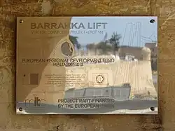 Plans to construct a new lift at the site were initiated in 2004, with the intention being to facilitate access to the historic centre of Valletta from the Grand Harbour, where cruise liners were being berthed. A ferry service linking the Three Cities to the harbour was also planned.[17] In 2009 it was decided that the lift was to be rebuilt by the Grand Harbour Regeneration Corporation at an estimated cost of €2 million. The estimated date of completion was originally March 2011,[19] but delays related to obtaining the required permits led to work on the project beginning in July 2011.[20][21][22] The construction of the lift was partially financed by the European Regional Development Fund.[23]