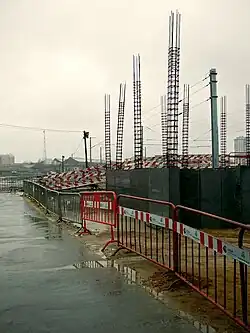 The Gazeta dos Caminhos de Ferro stated that it would be impossible to build the new complex on the embankment due to the large number of chemical gases expelled by the Companhia União Fabril's factories, which would be toxic to workers and corrosive to metals, including tools and structures.[55] Instead, they advocated building the new workshops on the site of the old ones, since advantage could be taken of the existing buildings, such as offices and cafeterias, large machine tools such as the air compressor or the acetylene producer, and the electricity, water, sewage and compressed air facilities.[55] The relocation of the workshop center would require the construction of new workshops for the locomotive depot, and the creation of new complexes for the departments of the Via Fluvial and the Central Eléctrica, since the existing workshops, in addition to maintaining the rolling stock, also did the repairs for the Via Fluvial and helped in the conservation of the locomotives in the depot.[55] In the case of the Via Fluvial, it would be less expensive to build a new ship repair center than to be constantly transporting the materials from the embankment, and this operation would complicate matters.[55] Another issue was the transportation of construction materials and machinery already existing in the old workshops to the embankment, which would have to be done by zorras (sleds) or wagons, a very expensive process.[55] The stability of the soil on the embankment was also in question, due to the presence of water in the soil, which would require extensive and expensive stabilization work.[55] On the other hand, the change of location would force the displacement of about 700 families, which would cause major problems for the local economy of Barreiro.[55] In addition, workers living in Lisbon and Barreiro would have to walk over the railroad tracks to reach the embankment, which was about km away from the Barreiro station, or else a work train would have to be created for this purpose.