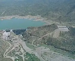 The Bartlett Dam is a concrete multiple-arch buttress dam on the Verde River, located 50 km northeast of Phoenix, Arizona. The dam creates Bartlett Lake and its primary purpose is irrigation water supply. It was the first dam constructed on the Verde River and the first of its type constructed by the U.S. Bureau of Reclamation. It was built between 1936 and 1939. It was named after Bill Bartlett, a government surveyor.[1][2] It was listed on the National Register of Historic Places in 2017.