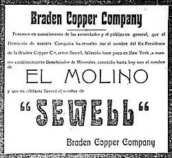 - ^ "Death of Barton Sewell American Smelting Man". The Anaconda Standard. 1915-01-08. p. 4. Retrieved 2024-04-01.