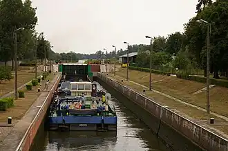 Wrocław is located on a canalized section of the Oder river.[8][9] This means that the Bartoszowice Barrage is part of a series of structures maintaining the required water level on the river:[1]