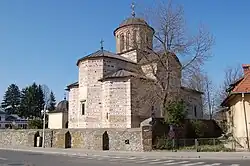 The reconstruction of Curtea de Argeș started after 1340, with the erection of new fortifications and a new palace.[46] The construction of the Princely Church of Saint Nicholas in Curtea de Argeș also commenced during Basarab's rule, but it was completed after his death.[47] Basarab seems to have made his son, Nicholas Alexander, his co-ruler around 1344.[43][48] Louis I of Hungary, who had succeeded Charles I in 1342, marched to southeastern Transylvania in the summer of 1344.[49] To prevent a campaign against Wallachia, Nicholas Alexander visited Louis I and swore loyalty to him, according to the nearly contemporaneous John of Küküllő's chronicle.[49] Wallachian troops supported Andrew Lackfi's attack against the Mongols in 1345, according to a Wallachian chronicle, but historian Victor Spinei rejects this report.[50][51] According to a charter of his grandson, Vladislav I Vlaicu, Basarab died in the year 6860 of the Byzantine calendar, which is AD 1351 or 1352.[43]