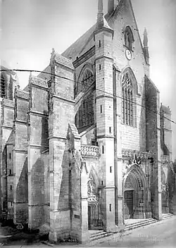 Simon de Melun, seigneur de Cléry and Marshal of France, who patronized the church, wished to establish a collegiate church, which King Philip IV of France approved in November 1300.[3] In his Last Will and Testament of 1302, Simon left sufficient funds to establish five prebends in the church, a will which was carried out by his widow and son.[4] The act, and regulations governing the college, were confirmed by Bishop Bertrand de Saint-Denis of Orléans (1299–1307) in a charter of 1 December 1302.[5]