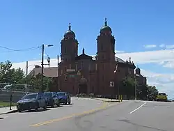 The Minor Basilica of St. Lawrence the Deacon & Martyr is a minor basilica of the Catholic Church in downtown Asheville, North Carolina, United States. The church was designed and built in 1905 by Spanish architect Rafael Guastavino along with his fellow architect R. S. Smith and the Catholic community of Asheville.[1] Pope John Paul II elevated the status of the church to minor basilica in 1993. It is a parish church, located within the Diocese of Charlotte. It is on the National Register of Historic Places and is the only basilica in western North Carolina. Its dome, inspired by the Royal Basilica of Our Lady of the Forsaken of Valencia, has a span of 58 by 82 feet (18 by 25 m), and is reputed to be the largest, freestanding, elliptical dome in North America. The architectural style is Spanish Renaissance.[2][3]