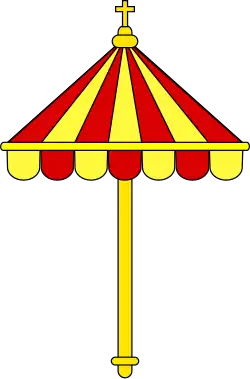 Church symbols that are important to basilicas include the Umbraculum, the tintinnabulum (bells) and the symbol of tiara and keys that is on the Vatican flag. As of the time of elevation to basilica status, Nalty commissioned artists to design and produce the symbols to be used by the Basilica of St. Stephen.[1]
