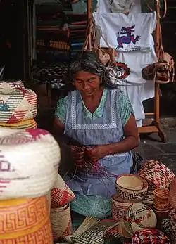The best known basketry of the state is done by the Mixtecs, whose territory extends over parts of Oaxaca, Puebla and Guerrero.[4] Traditionally their work was almost exclusively done with palm fronds and noted in the Sierra Codex. However, environmental degradation has made this raw material scarce, putting the craft in danger. Those who still work with it create petates, soyates, fans, tenates and sombreros, and for a number of households, it is their only source of income. The old fretwork decorative designs have almost disappeared, but people can still be seen working the fronds in various public spaces. Despite this, the finest petates are made in this region, along with the town of San Luis Amatlán. There are programs to support basket makers in the Mixtec area of Oaxaca, such as FIDEPAL (Fideicomiso de la Palma), a society dedicated to conserving and promoting the craft.[1][4]