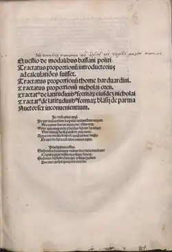 He published Questio de modalibus, a book where he collected several medieval treatises by Thomas Bradwardine, Nicole Oresme, Biagio Pelacani, and Giovanni de Casali.[1][2]
