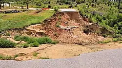 On May 25, 2015, the earthen dam impounding Bastrop State Park Lake failed after hours of heavy rain in the area. The lake emptied and flooded across Texas State Highway 71. The water moved through a subdivision south of the highway and emptied into the Colorado River.[35]