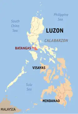 Batangas's 3rd congressional district is one of the six congressional districts of the Philippines in the province of Batangas. It has been represented in the House of Representatives of the Philippines since 1916 and earlier in the Philippine Assembly from 1907 to 1916.[3] The district consists of the northern Batangas cities of Santo Tomas and Tanauan, as well as adjacent municipalities surrounding the Taal Lake: Agoncillo, Alitagtag, Balete, Cuenca, Laurel, Malvar, Mataasnakahoy, San Nicolas, Santa Teresita and Talisay, a configuration that has been in place since 1987.[4][5] It is currently represented in the 20th Congress by King Collantes of the Nationalist People's Coalition (NPC).[6]