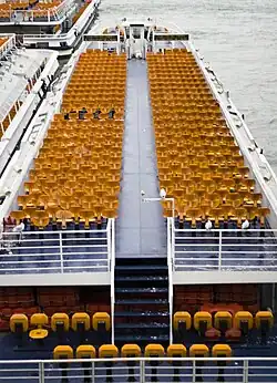 The modern boats are popular tourist attractions in Paris. Boats often have an open upper deck and an enclosed lower deck; some have sliding canopies that can close to protect the open deck during inclement weather. Boats can accommodate up to 1000 passengers each.[3] Most boat tours include a live or recorded commentary on the sights along the river. A typical cruise lasts about one hour. Many companies offer lunch and dinner cruises as well. Most boats are equipped with lights to illuminate landmarks in the evening.