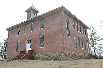 The Bates School is a historic former school building at 1074 Bates School Road in Bates, Arkansas. It is a two-story brick building with a hip roof and Colonial Revival styling. Its main facade has a central entrance in a recessed segmented-arch opening, which is flanked on either side by windows set in similar openings. At the second level there are four windows two directly above the lower flanking windows, and two above the entrance. A cupola is set near the base of the roof above the entrance; it is square, louvered on all sides, and topped by a pyramidal roof. The school was built in about 1916, and was in use serving as a public school until 1964.[2]
