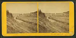 Situated at the head of navigation on the Connecticut River, and shielded from strong winds by the Green Mountains to the west and White Mountains to the east, Bath soon developed into "...one of the busiest and most prosperous villages in northern New Hampshire."[5] Intervales provided excellent alluvial soil for agriculture, and the Ammonoosuc and Wild Ammonoosuc rivers supplied water power for mills. The population reached 1,627 in 1830, when 550 sheep grazed the hillsides.[4] A vein of copper was mined. The White Mountains Railroad up the Ammonoosuc River valley opened August 1, 1853, shipping Bath's lumber, potatoes, livestock and wood pulp. By 1859, the town had two gristmills and two sawmills.[6] Other industries would include a woolen mill, creamery, distillery and two starch factories.[7]