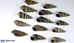 Batillaria attramentaria, common name the Japanese mud snail, is a marine gastropod mollusk in the family Batillariidae.[1] It is a species of sea snail most often found in the salt marshes and mudflats of marine, estuarine, riparian and wetland habitats.[2] Introduced to North America between the 1920s to 1930s via the coasts of Washington and California, the Japanese mud snail became an invasive species notorious for reducing biodiversity by outcompeting the native hornsnail Cerithidea californica.[3]