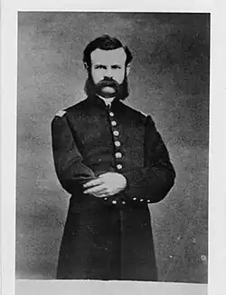 Battery F, 2nd Illinois Light Artillery formed at Cape Girardeau, Missouri, and mustered into federal service on 11 December 1861.[1] The original officers were Captain John Wesley Powell of Hennepin, Illinois, First Lieutenants Michael Dittlenger of Cape Girardeau and Christian D. Bless of Lewistown, Illinois, and Second Lieutenants Gustavus A. Tirmenstein of Cape Girardeau and Joseph W. Mitchell of Bloomfield, Missouri. Rank and file included 1 first sergeant, 4 sergeants, 5 corporals, and 128 privates. The privates were from Missouri and mostly from Cape Girardeau.[2] Powell was promoted to major on 1 September 1864.[3] Powell survived the war and led the first successful voyage through the Grand Canyon in 1869.[4] Powell was replaced as captain by Walter H. Powell of Macon County, Illinois. W. H. Powell mustered out on 15 May 1865 and was replaced as captain by George R. Richardson.[5]
