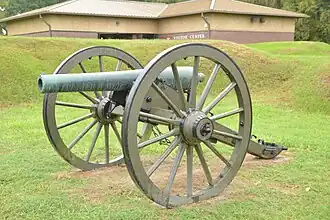 Battery I took part in the Chattanooga campaign on 23–27 November 1863, including fighting at Tunnel Hill on 24–25 November which was part of the Battle of Missionary Ridge.[1] During the battle, the battery was led by Lieutenant Josiah H. Burton and reported to the 4th Division under Hugh Boyle Ewing and XV Corps under Francis Preston Blair Jr.[13] Burton was temporarily assigned from Battery "F", 1st Illinois Light Artillery Regiment.[14] The unit participated in the pursuit to Graysville, Georgia on 26–27 November. Battery I marched to the relief of Knoxville, Tennessee from 28 November–9 December. Afterward, the battery guarded Scottsboro, Alabama until April 1864. At that time, the unit moved to Nashville, Tennessee where it formed part of the artillery reserve of the city's garrison until November 1864.[1]